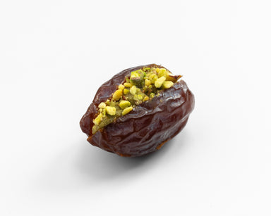 Raphia’s signature Medjoul dates stuffed with smooth pistachio cream and garnished with pistachio crumbs for added crispness. Contain traces of ses...