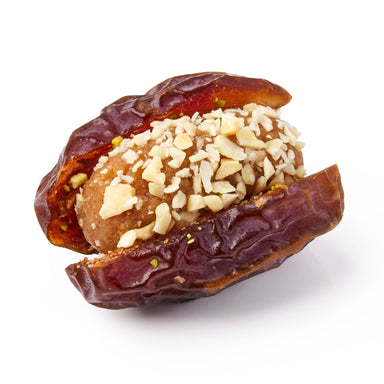 Medjoul dates generously filled with caramelised cashew nuts, delicately mixed with shaved coconut and a hint of salt, creating a perfectly balance...