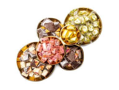 View full detailsBeautifully wrapped and elegantly arranged, this luxurious nougat selection features a variety of handcrafted treats, including rose-infused pink n...