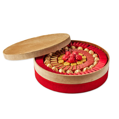 View full detailsA curated selection of exquisite chocolates, presented in a handcrafted box enveloped in sumptuous red velvet, with elegant gold accents that captu...