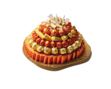 Celebrate the spirit of Eid with a luxurious assortment of premium chocolates wrapped in radiant gold and warm orange tones. This elegantly arrange...