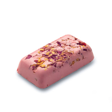Sesame croquant covered in natural rose flavoured white chocolate and adorned with dried rose petals for a delicate and oh so crunchy delight. Ind...
