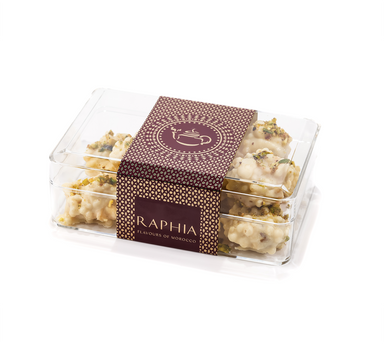 Raphia’s perfect crispy bite with a rich pistachio filling, delicately flavoured with a touch of orange blossom water. Hand-baked. Pres...