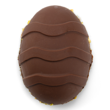 A rich milk chocolate shell dusted in golden shimmer, filled with creamed pistachio and crisp kunafa layers. The pistachio blends perfectly with th...