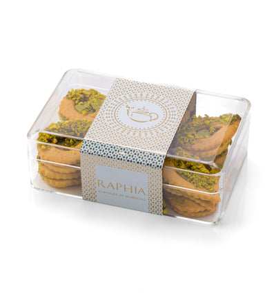 A delicate blend of tradition and indulgence. These handcrafted Moroccan shortbread cookies are generously filled and topped with crushed pistachio...