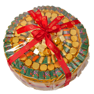 An exquisite showcase of Raphia’s finest chocolates and confections, beautifully arranged on a gold hamper that radiates festive luxury. Each pi...